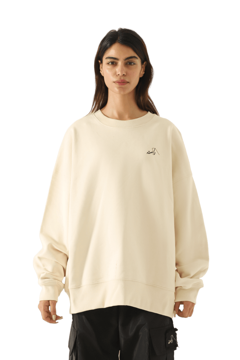 The Beige Rastah Logo Sweatshirt captures a minimalist style, with just the Urdu Rastah logo puff printed on the front, and the iconic rastah english logo and "Made in Pakistan" on the back. Composed of 100% cotton blend, its 420 GSM weight delivers an oversized, relaxed silhouette.