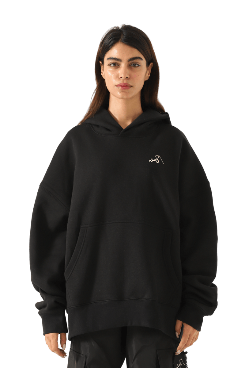 The black Rastah Logo Hoodie subtly highlights the brand, featuring an Urdu Rastah logo puff printed on the front. Made from a 500 GSM, 100% cotton blend, it ensures an oversized, comfortable fit.