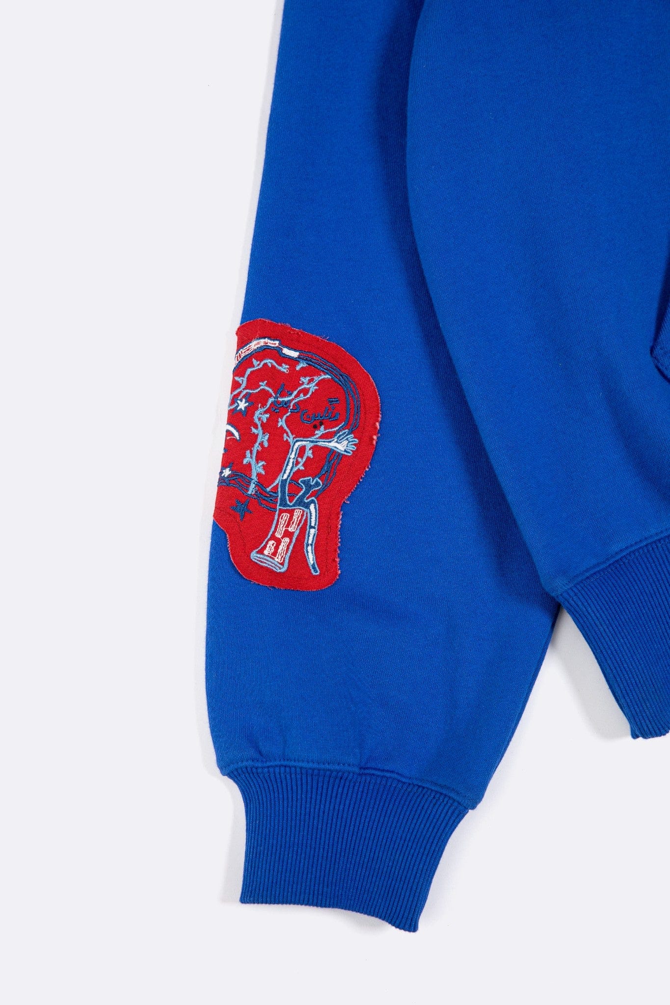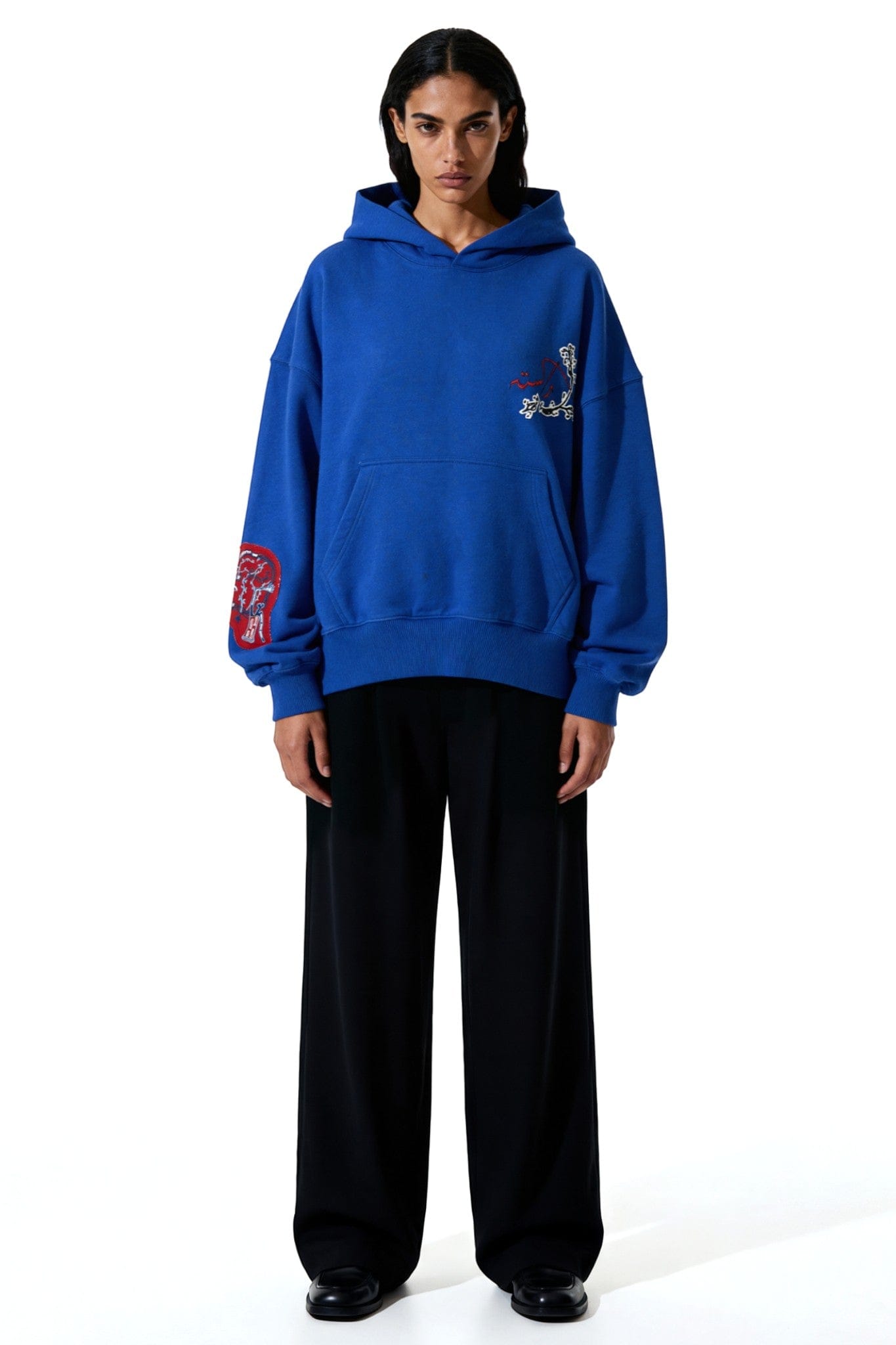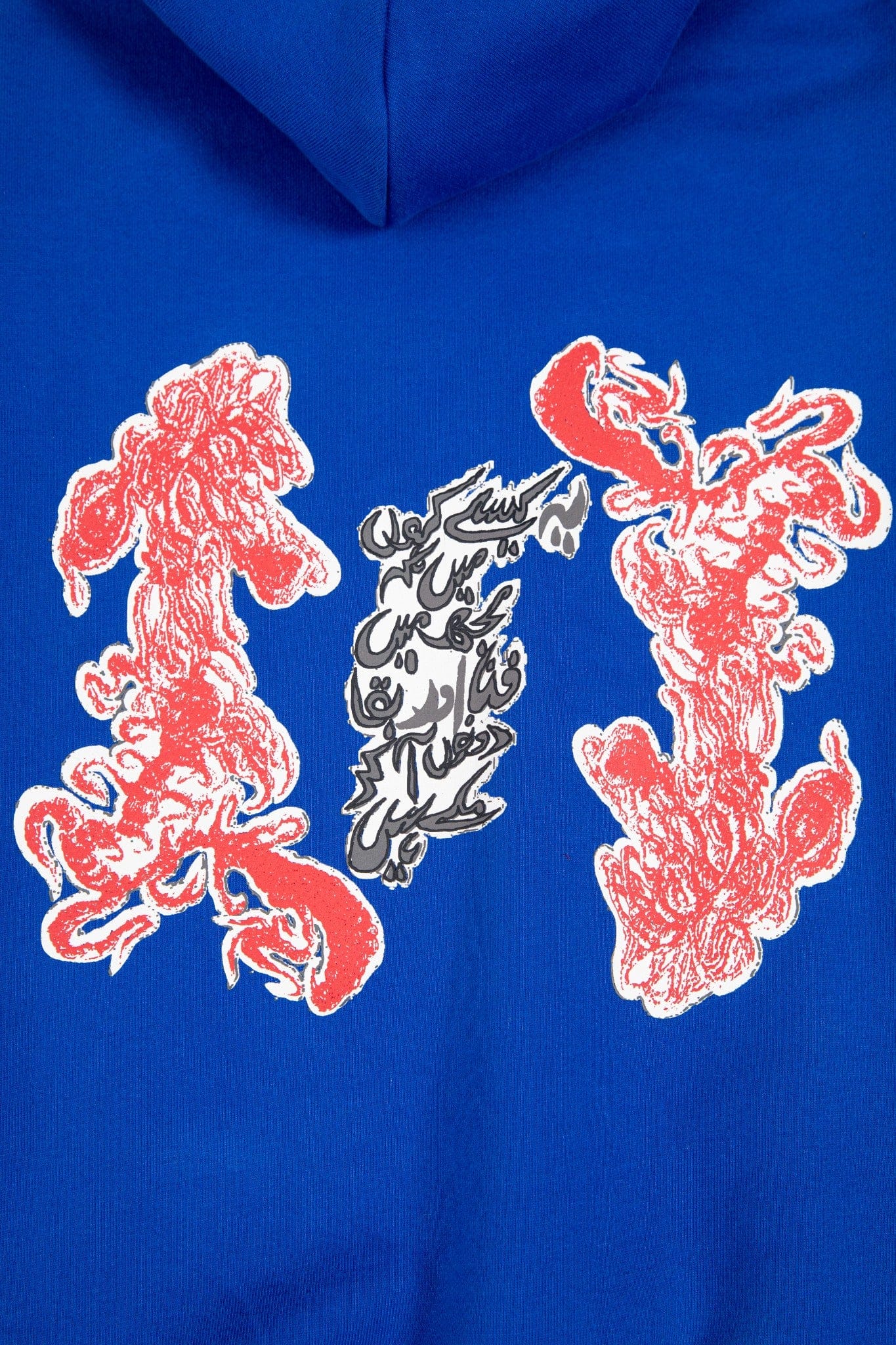 A heavyweight fleece sweatshirt featuring symbolic artwork inspired by Meeraji’s poetry.