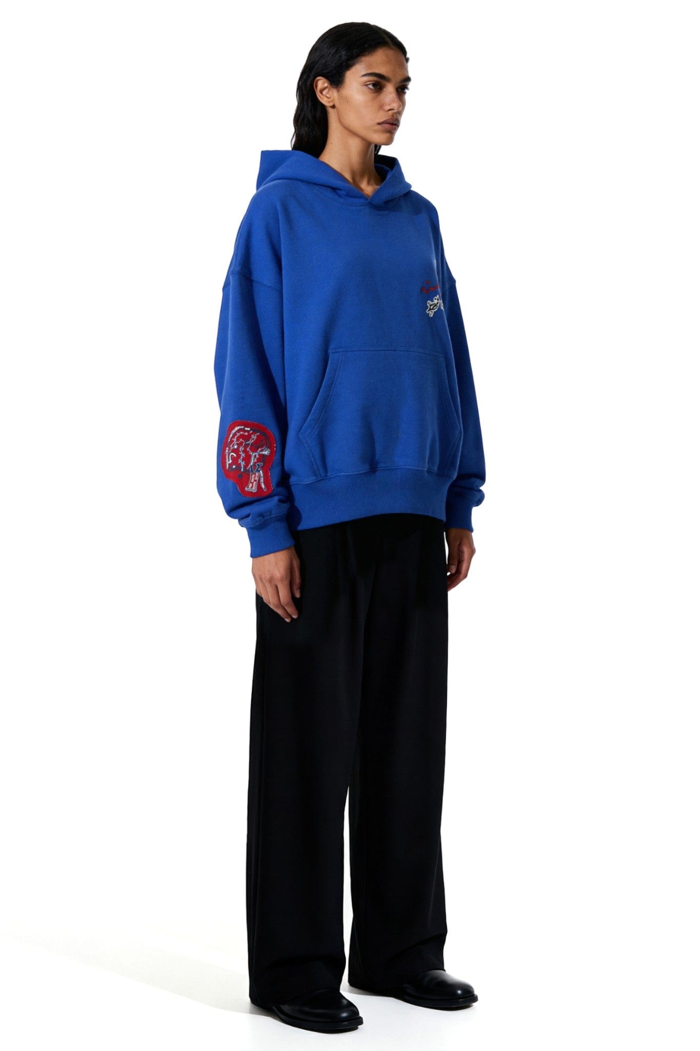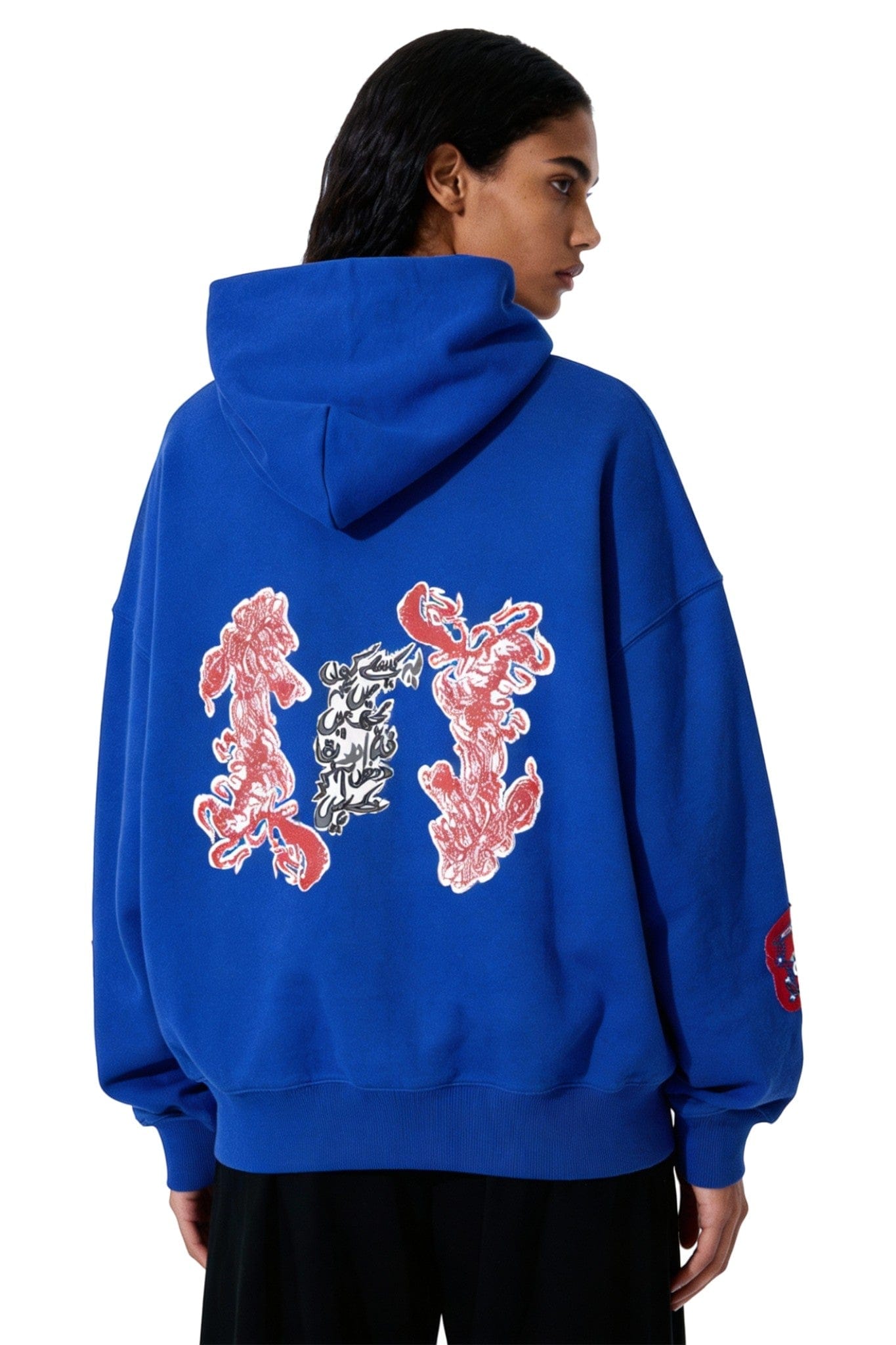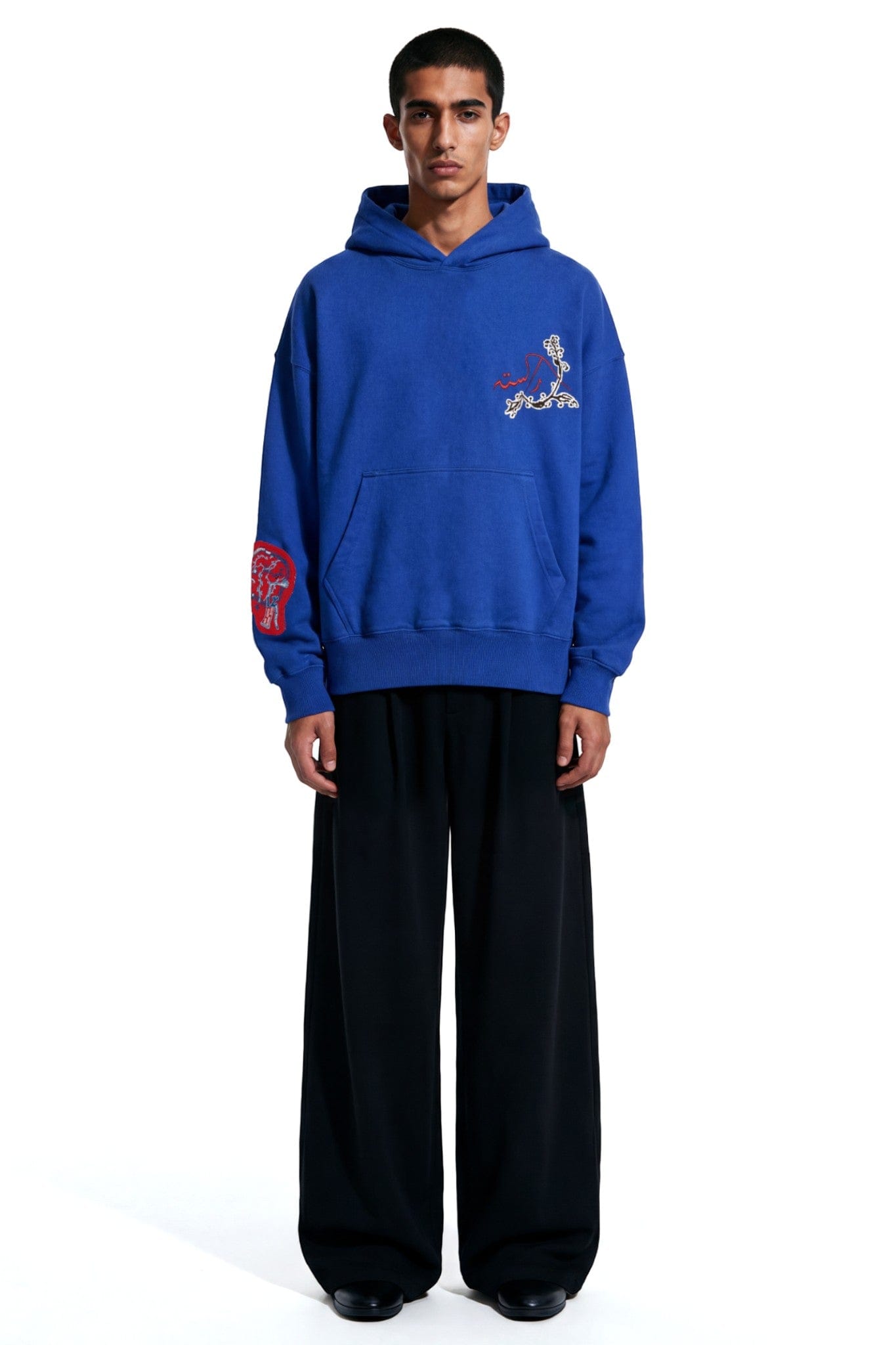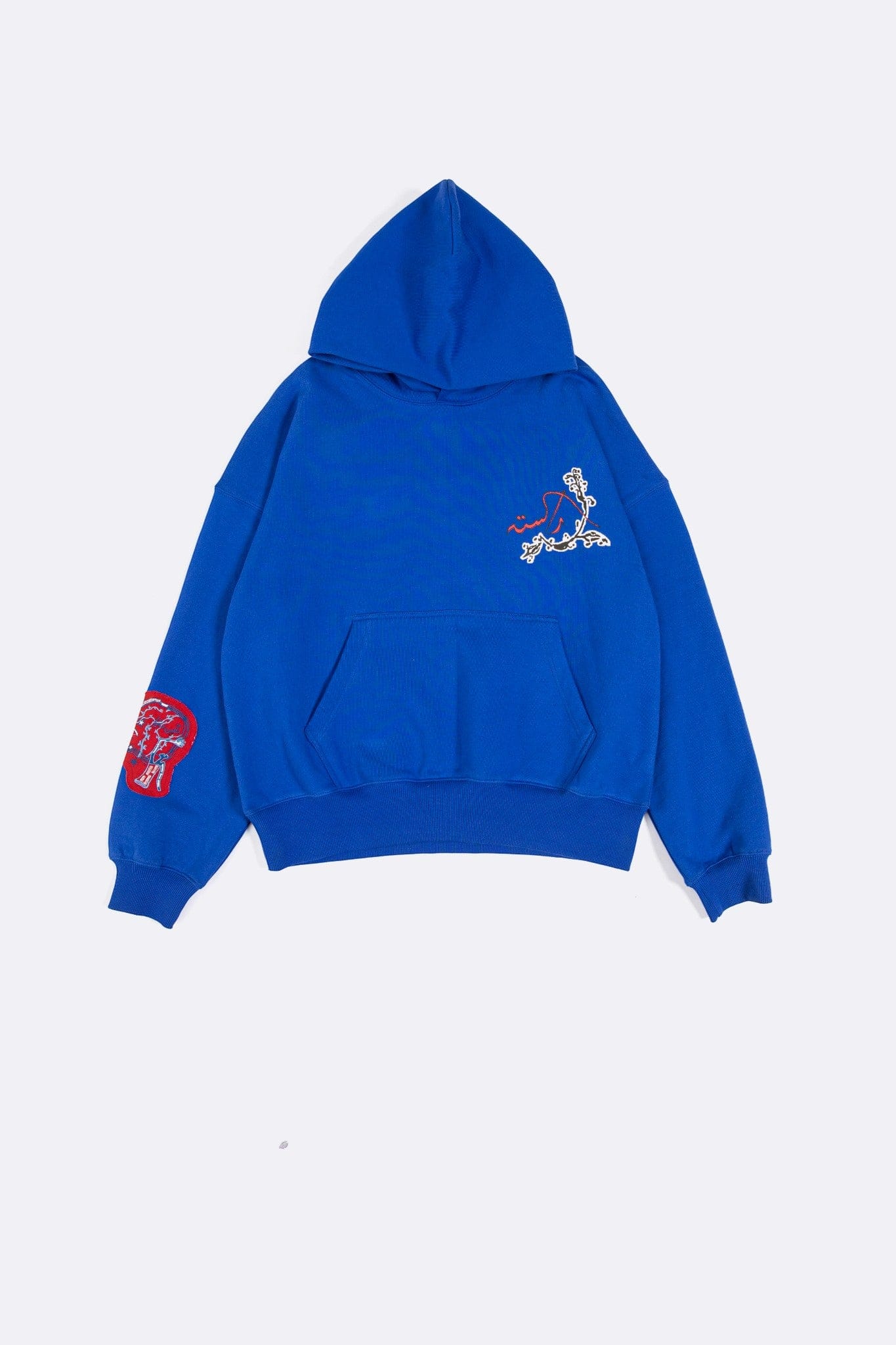A heavyweight fleece sweatshirt featuring symbolic artwork inspired by Meeraji’s poetry.