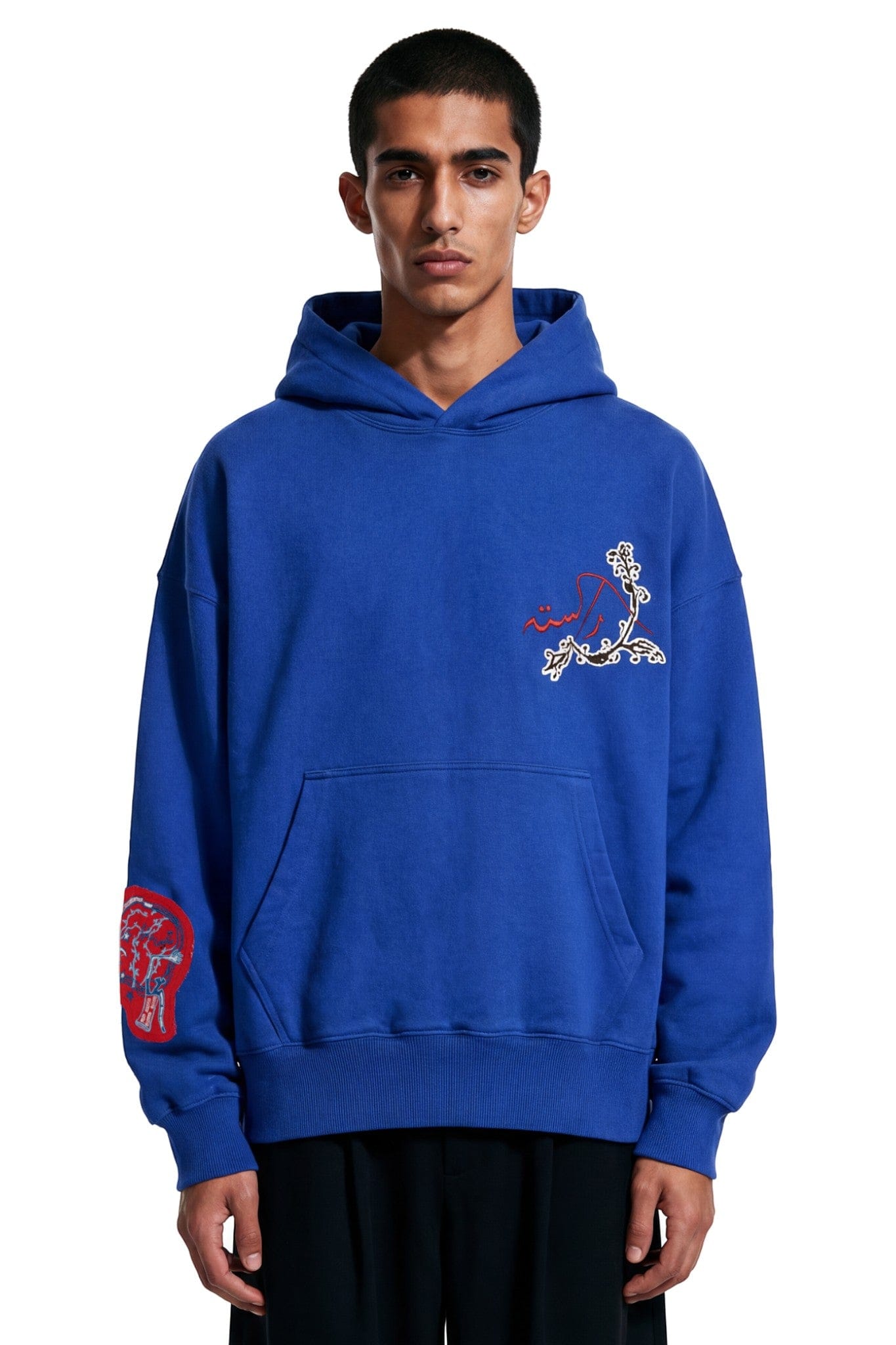 Finished with screen-printed Rastah branding at the front and a sublimated sleeve patch, this piece balances poetic expression with contemporary streetwear form.Artwork by Maha Farooq.