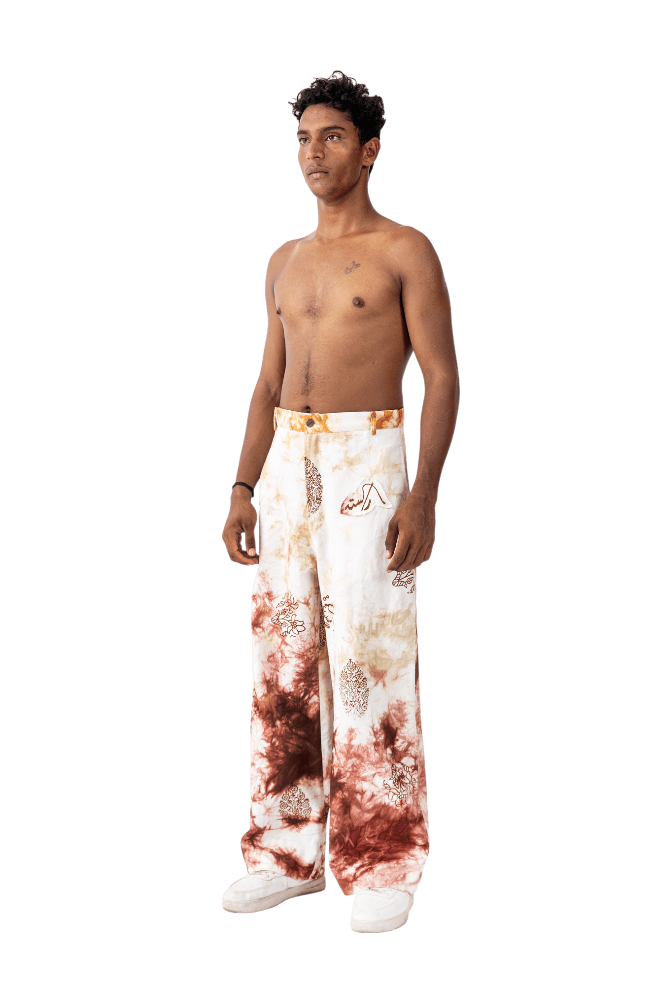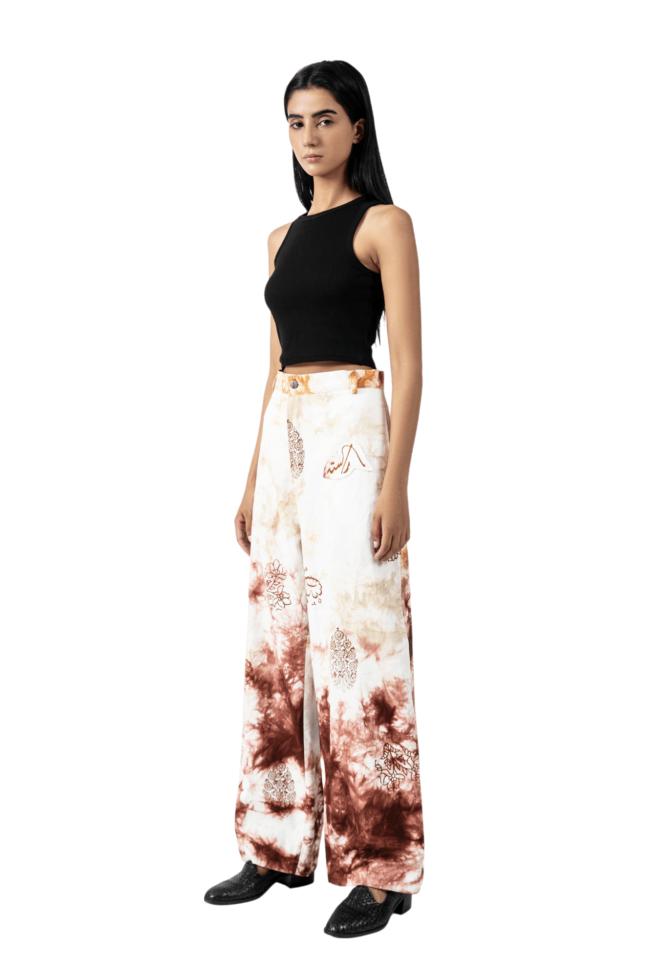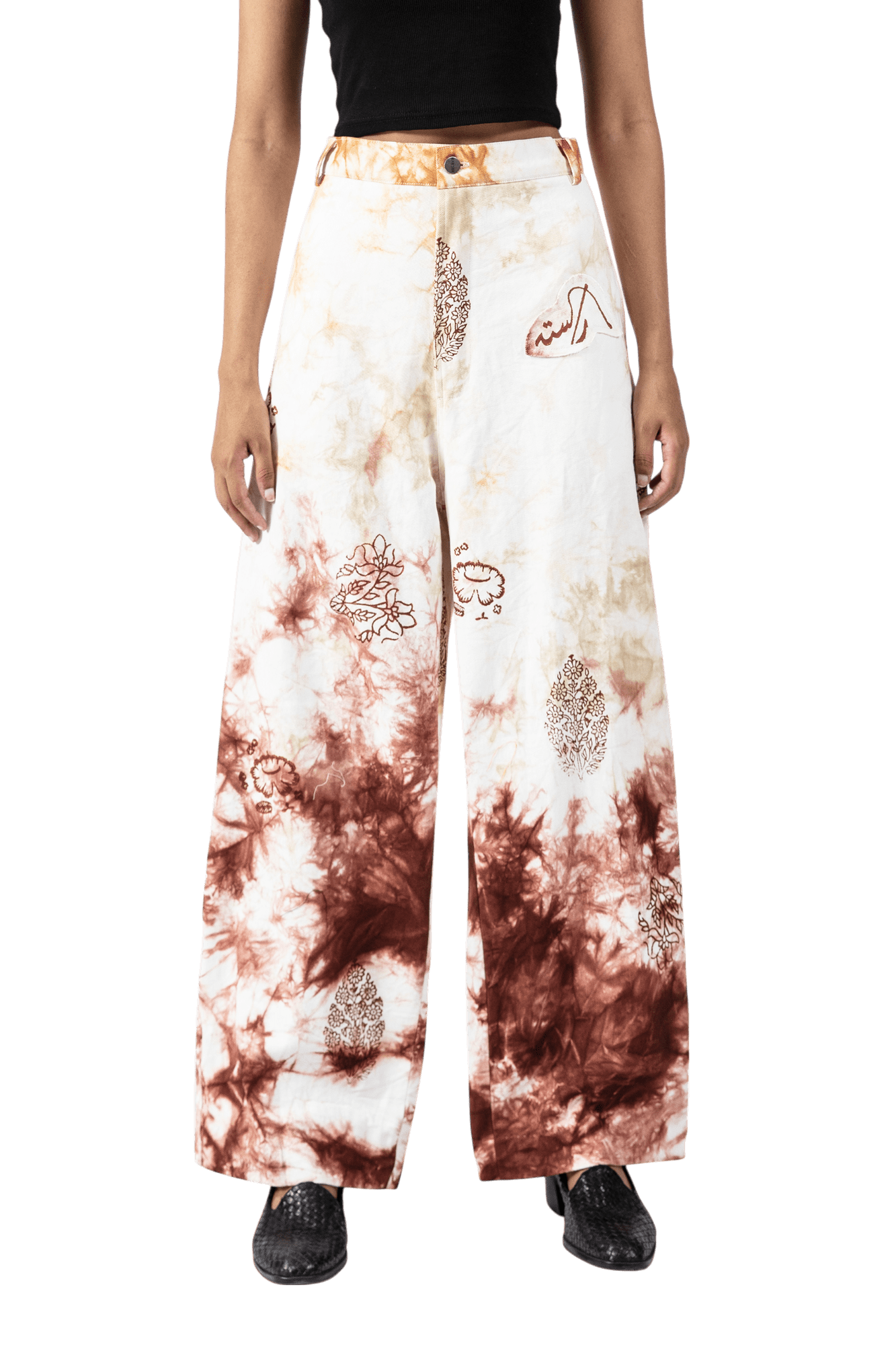 Smoked Block Print Denim Pants