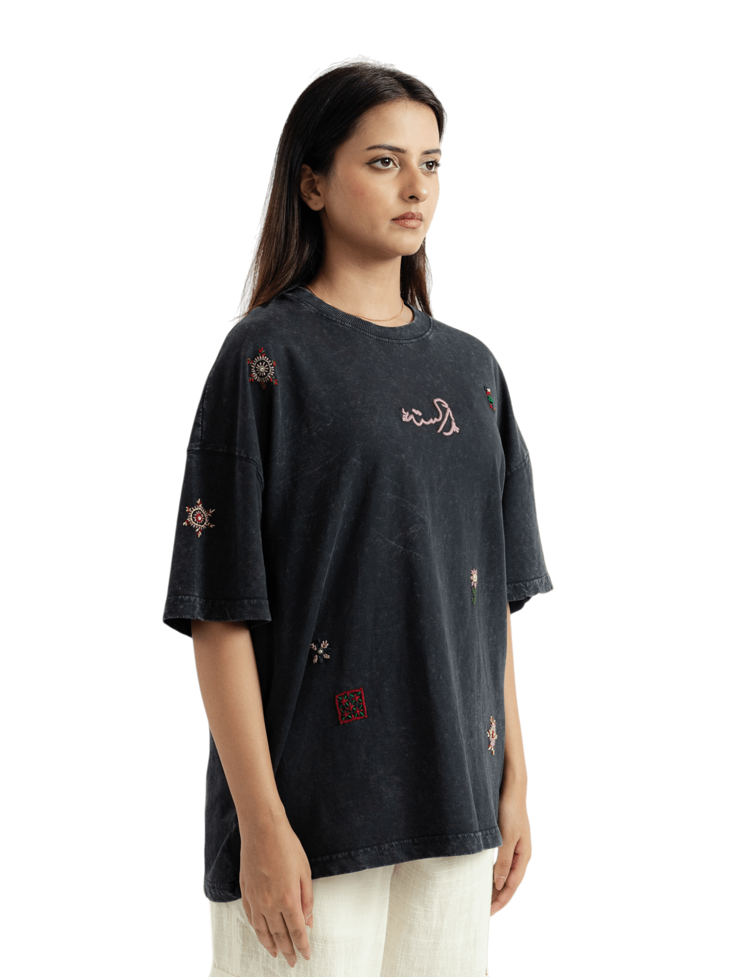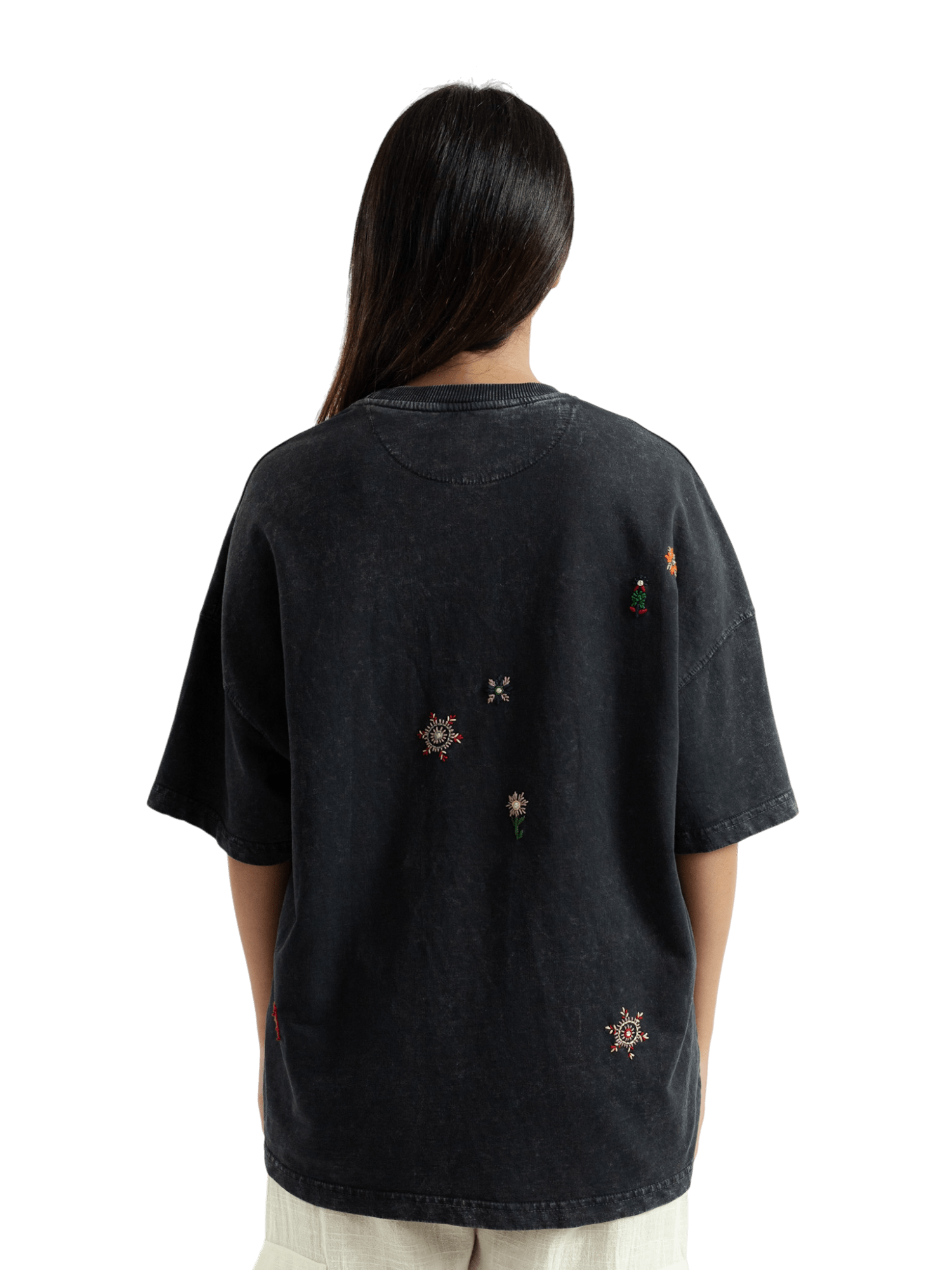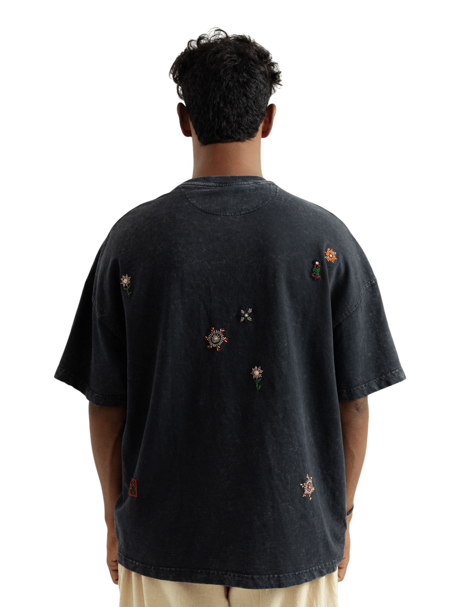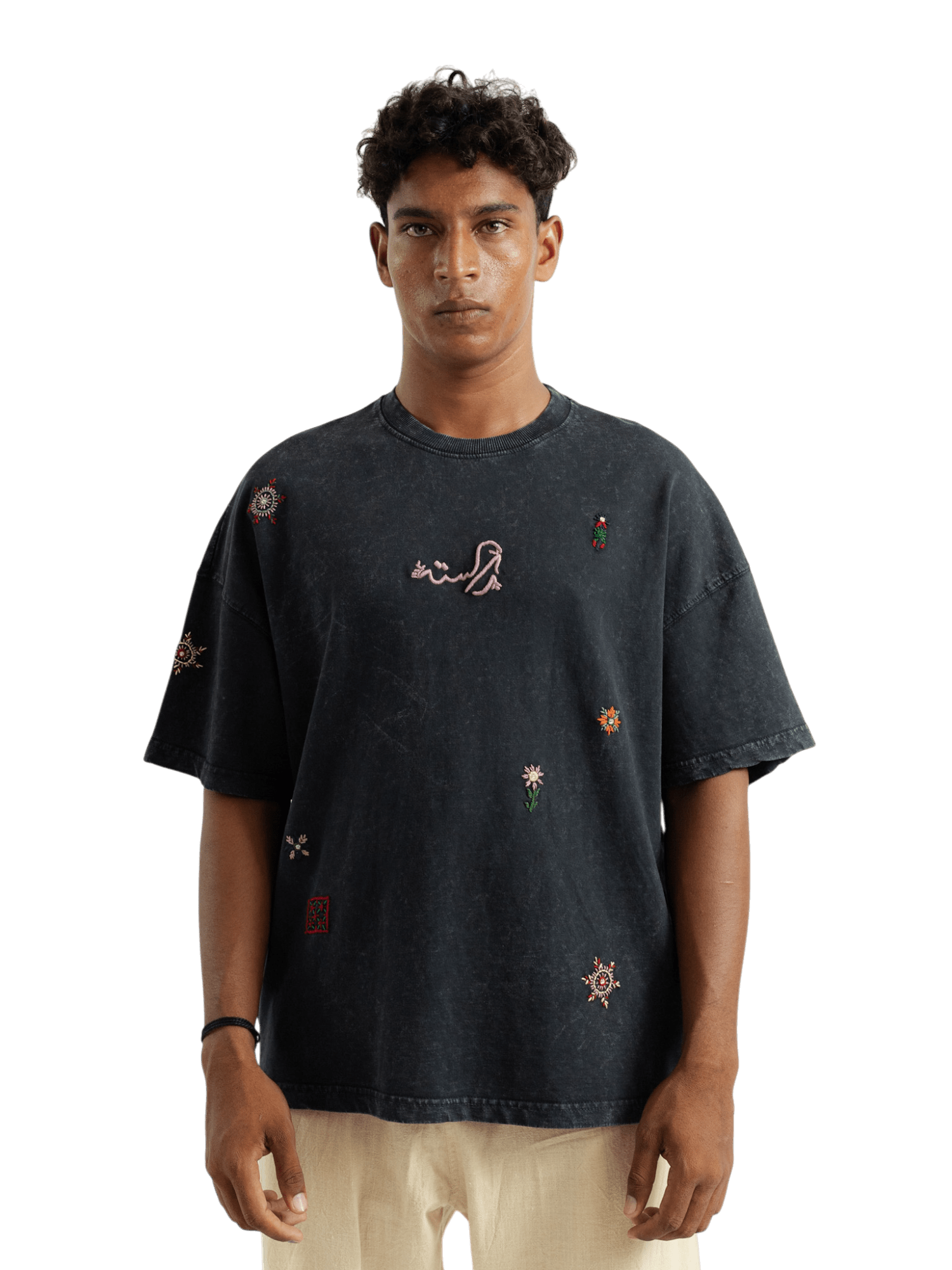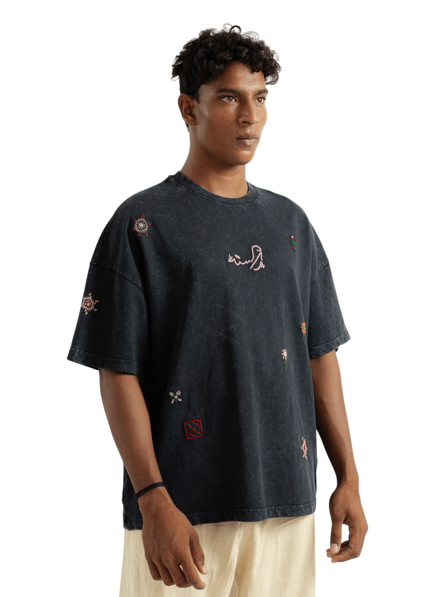“Nishaan” Acid-Wash Embroidered T-Shirt