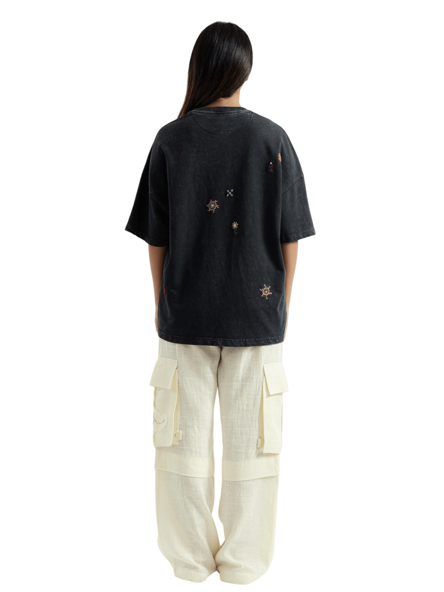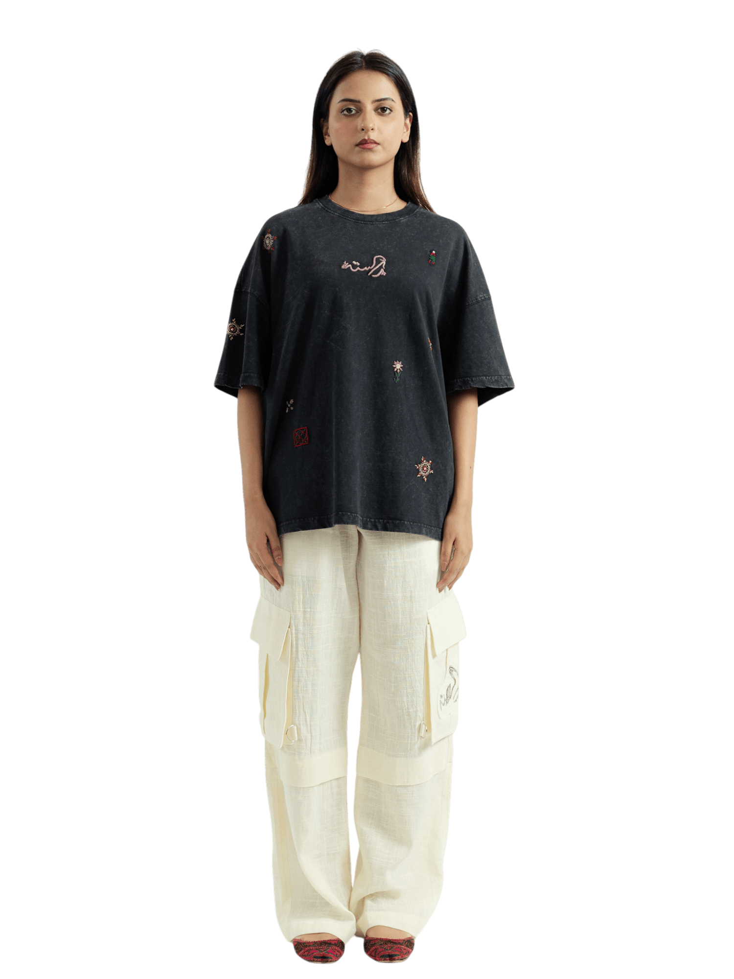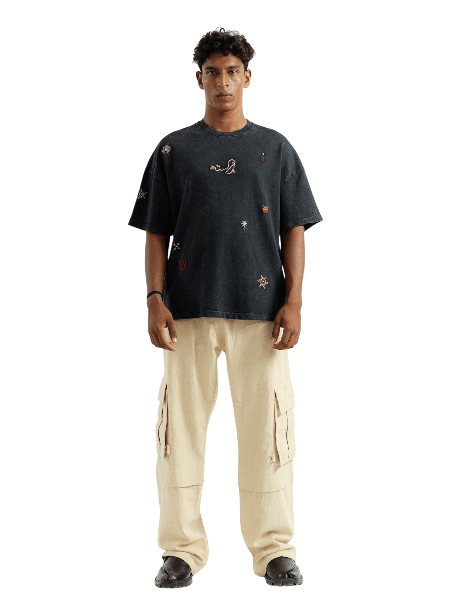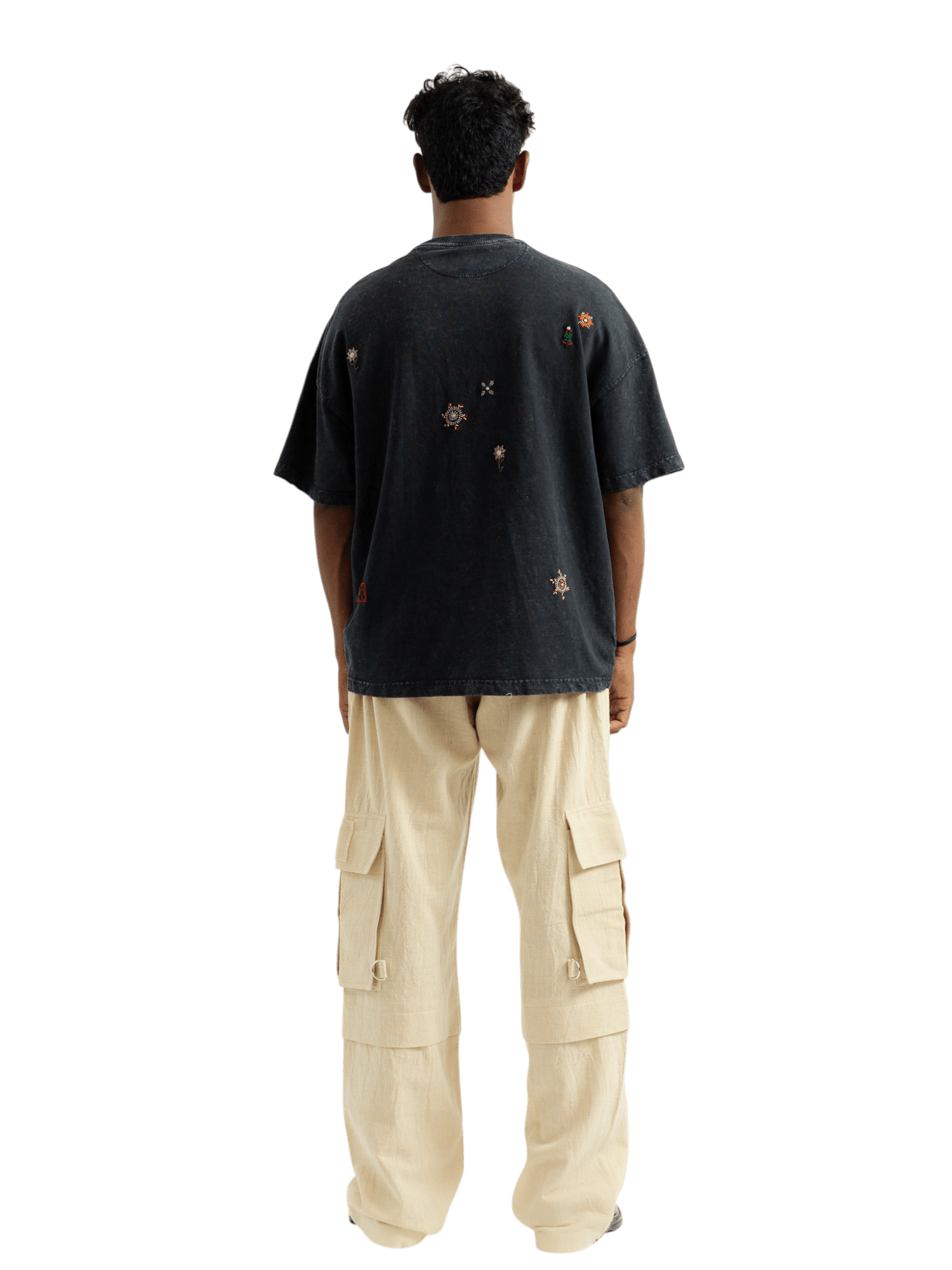 “Nishaan” Acid-Wash Embroidered T-Shirt