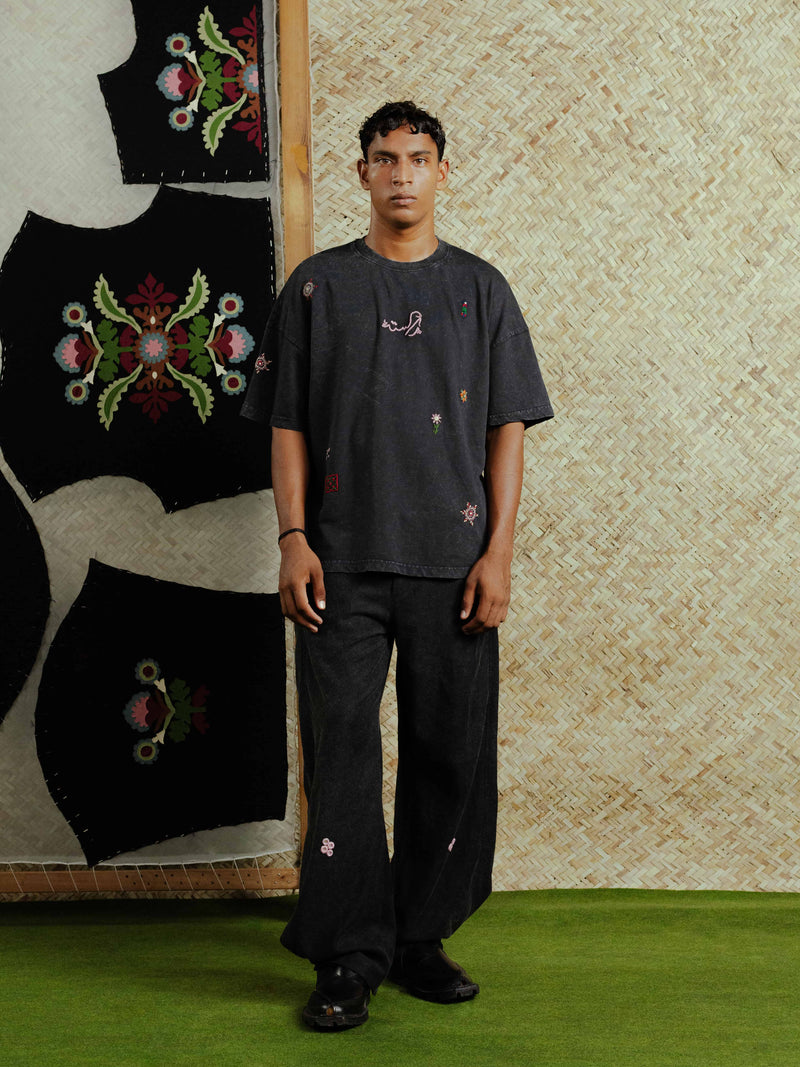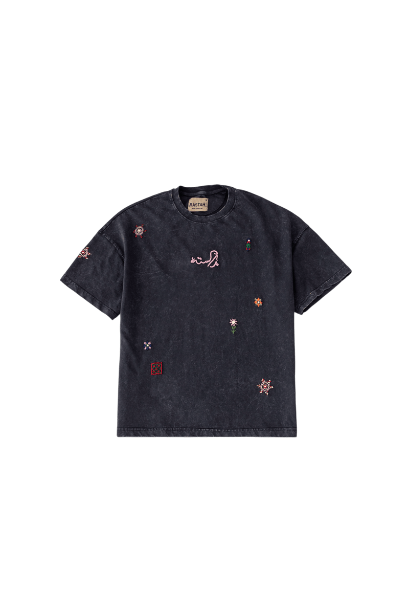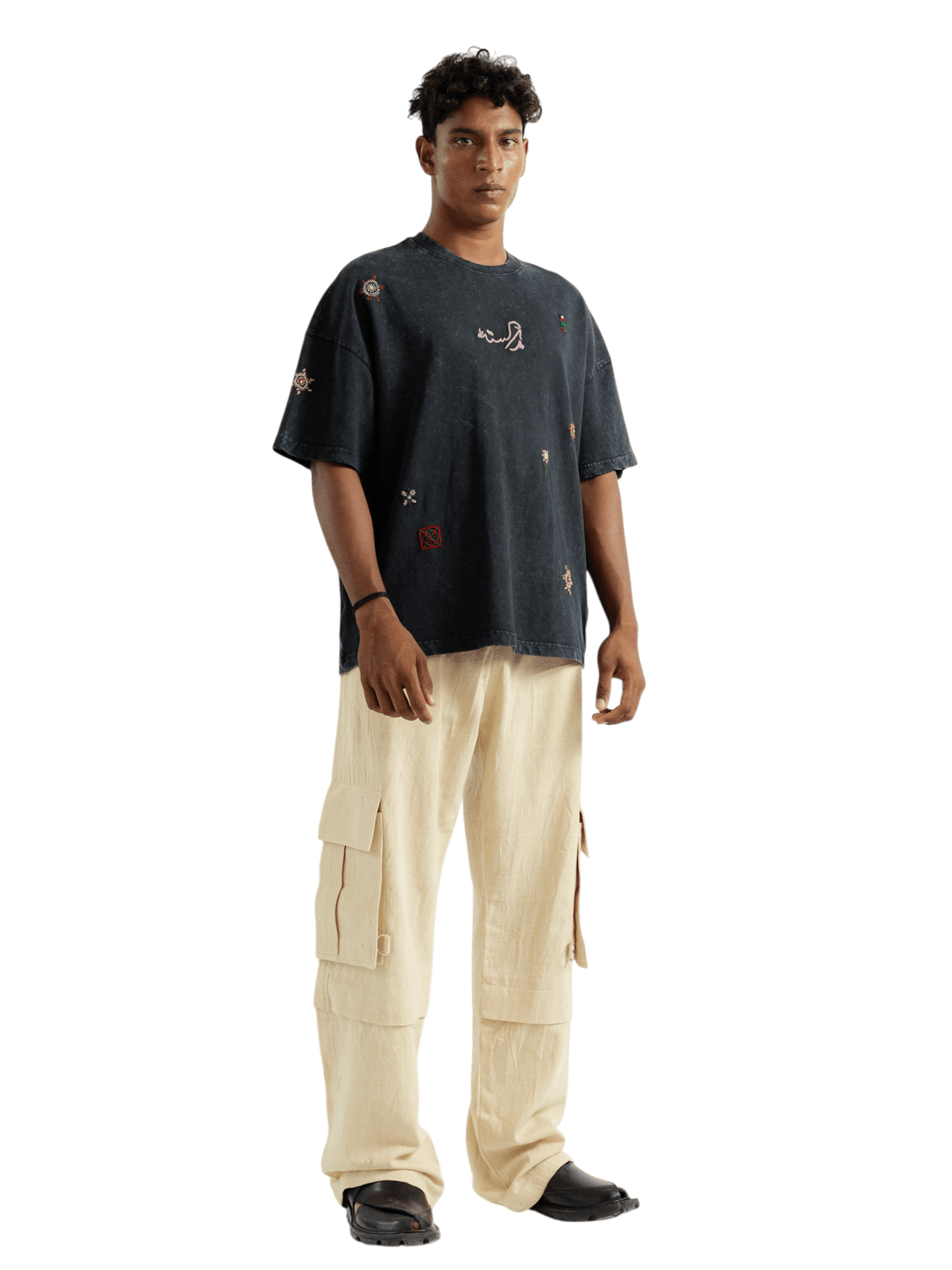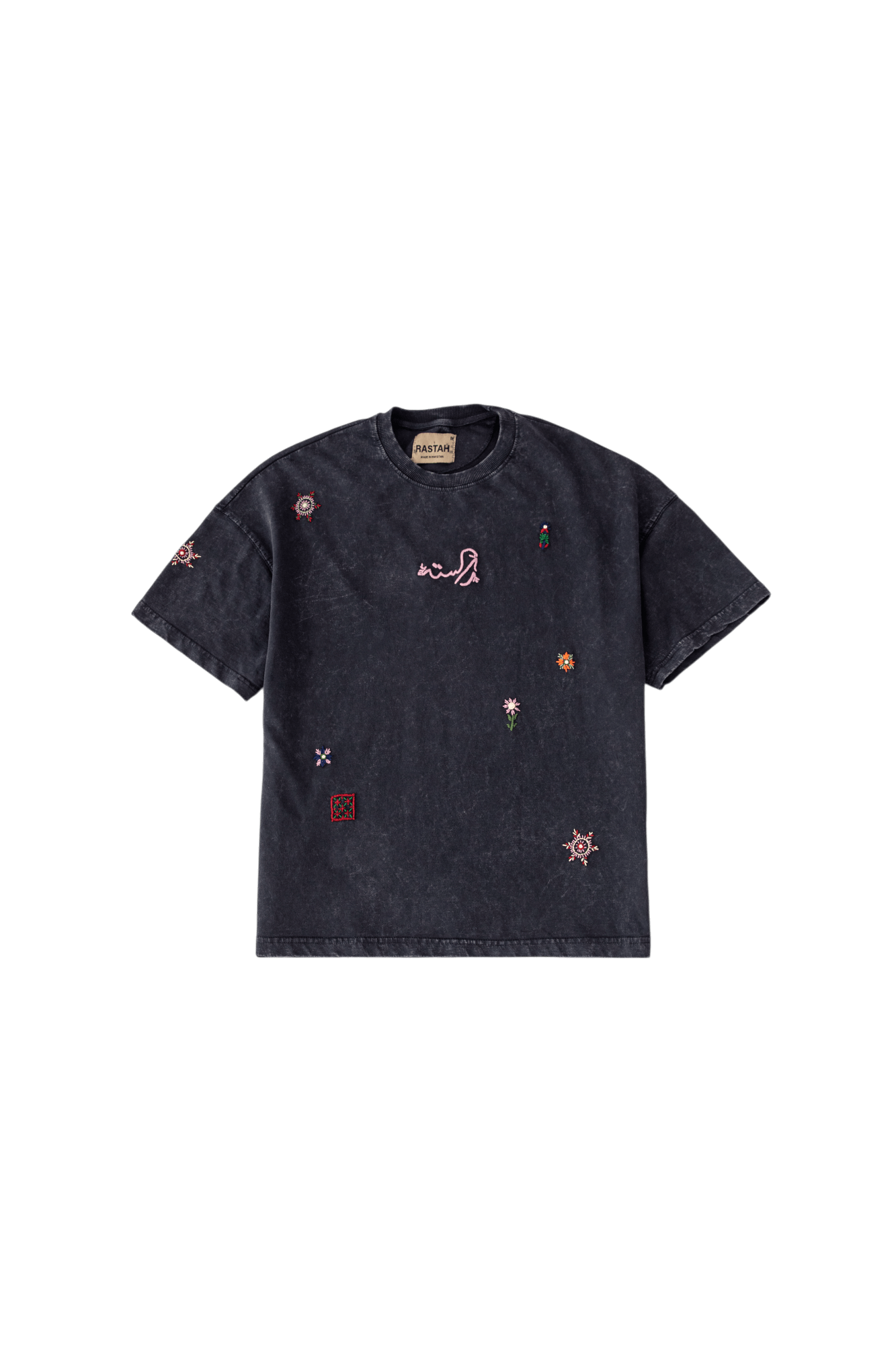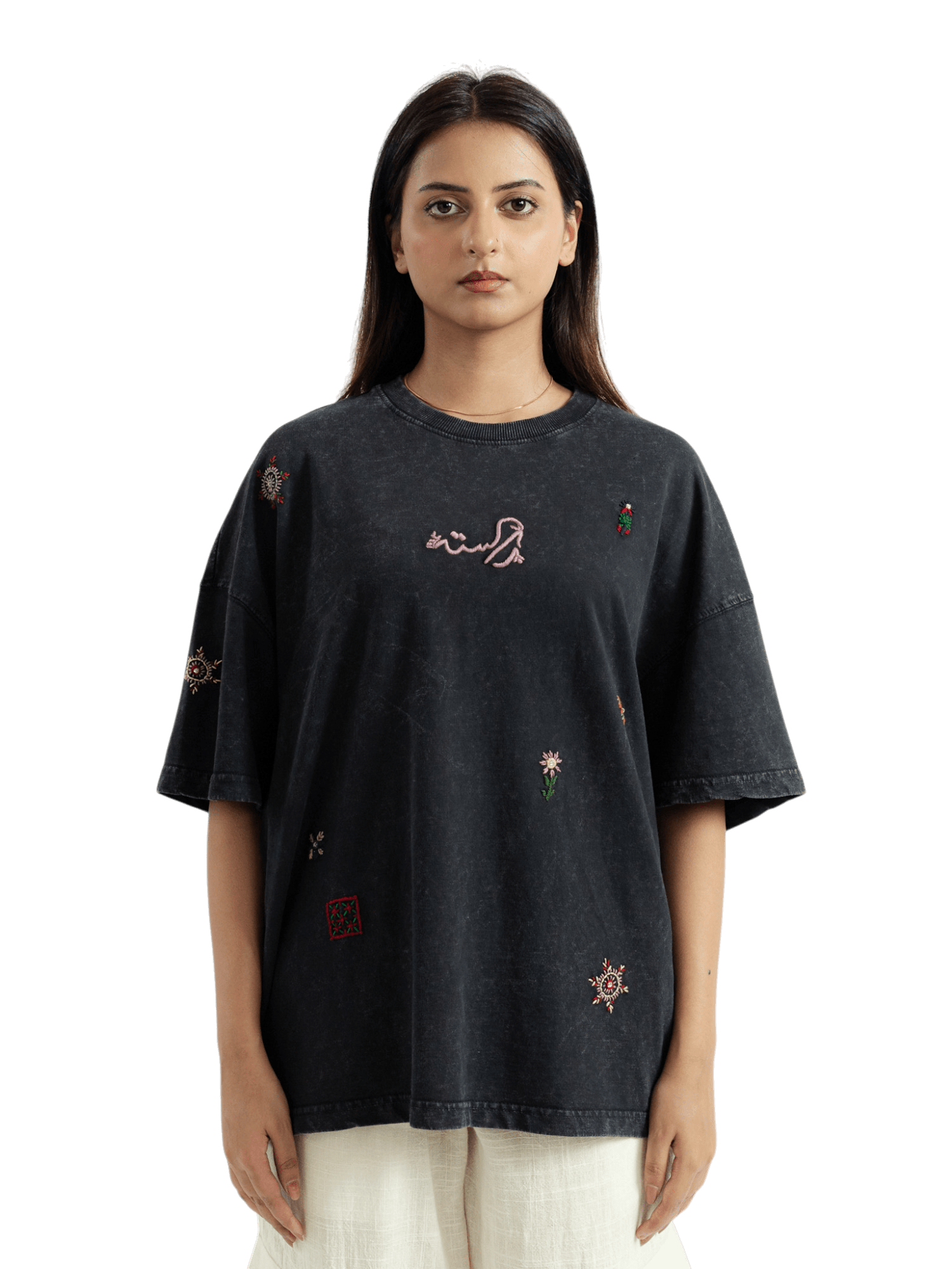 “Nishaan” Acid-Wash Embroidered T-Shirt