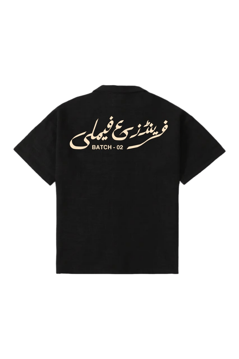 - "Friends and Family" in Urdu typography on the back with "batch-02" underneath
