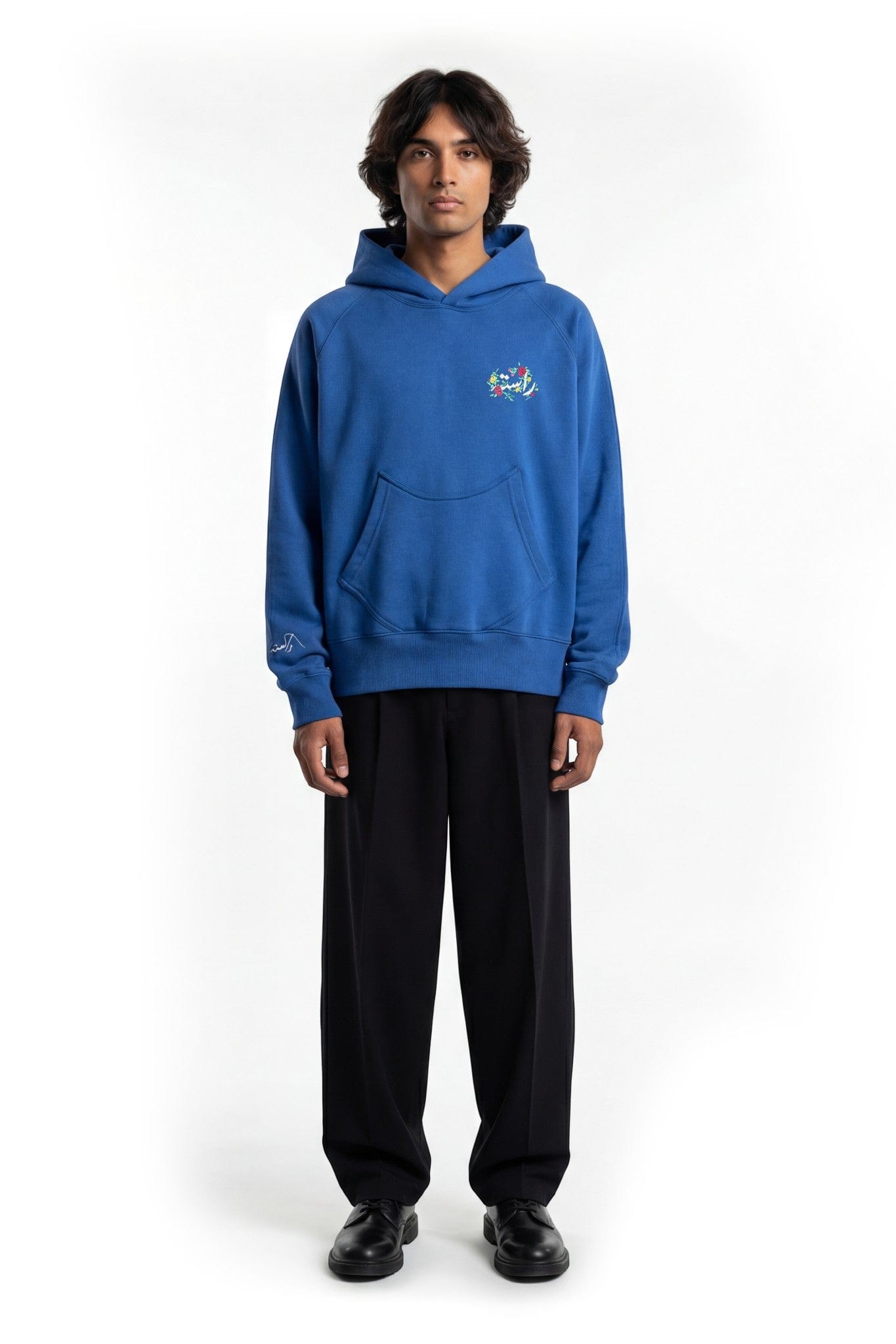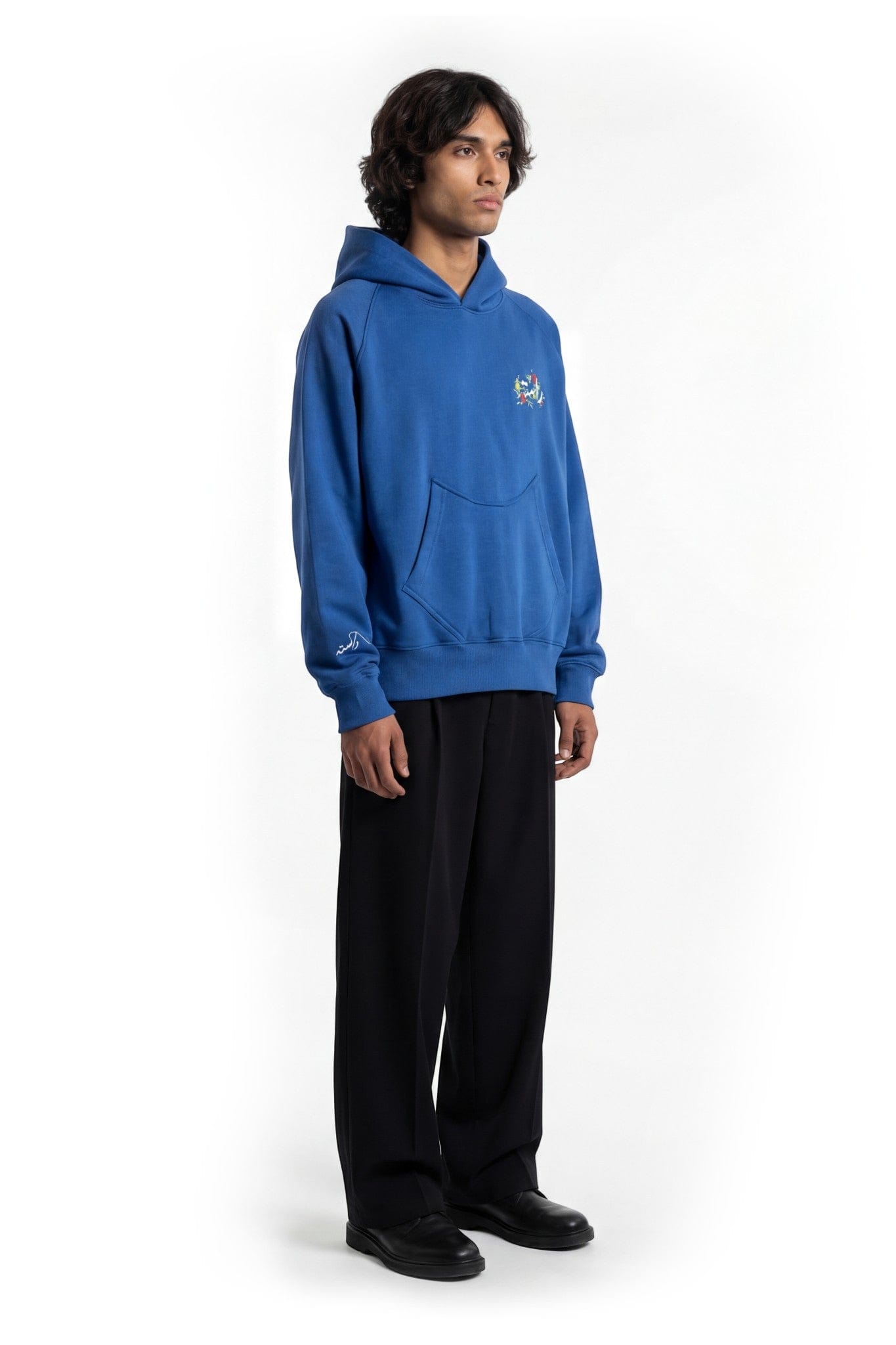 Crafted from 100% cotton 400 GSM fleece, this blue hoodie delivers structure, warmth, and statement storytelling in a clean, everyday silhouette. The heavyweight fleece offers a substantial hand feel while maintaining comfort through its relaxed fit and soft brushed interior.