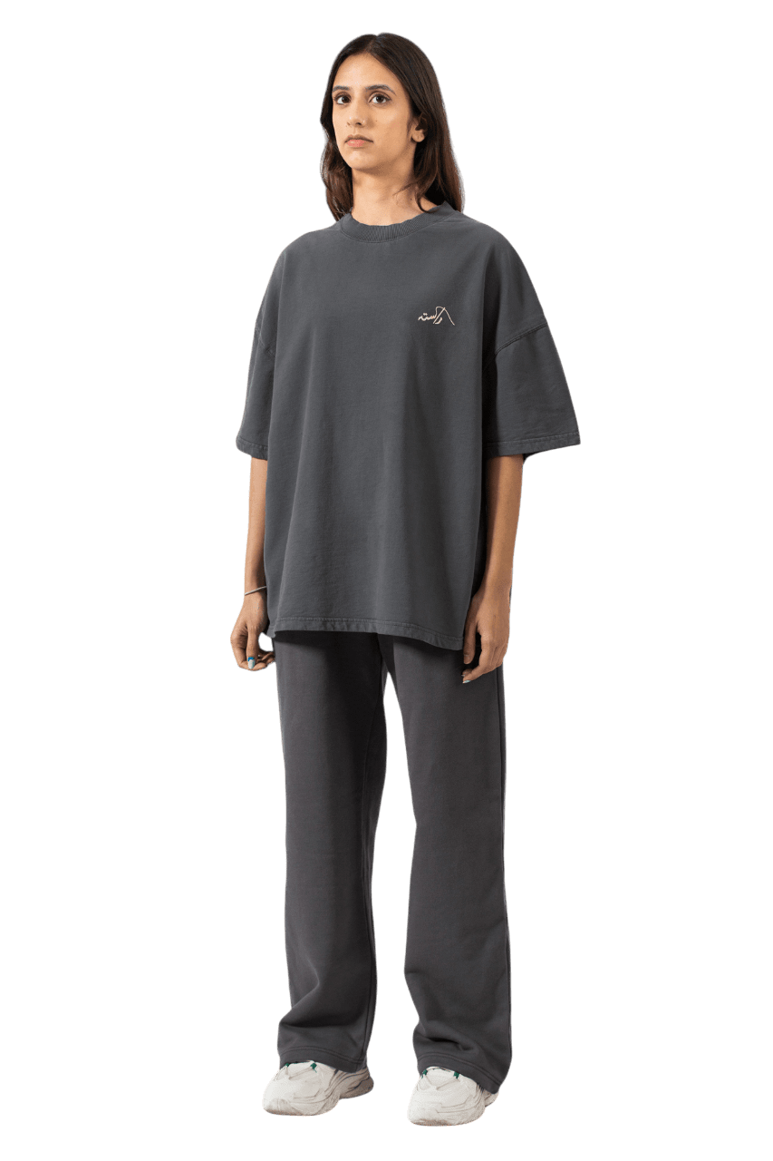 Crafted with meticulous detail, this Grey T-shirt discreetly showcases the Rastah emblem on the front, accompanied by the new "Made in Pakistan" inscription elegantly displayed in Urdu typography on the back. Constructed from 220 GSM cotton terry fabric, this shirt boasts an oversized fit, ensuring a relaxed yet stylish demeanor. Each garment is dyed to perfection, reflecting Rastah's commitment to quality and individuality.