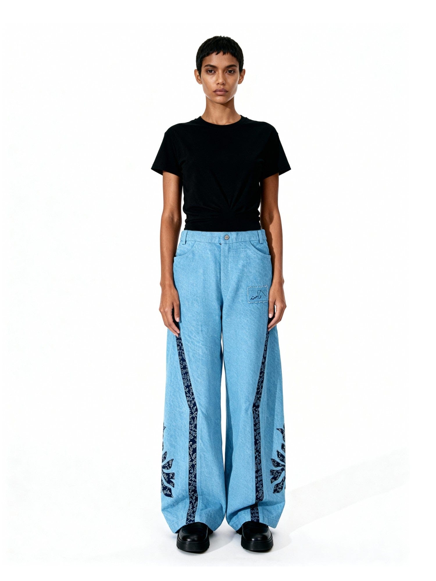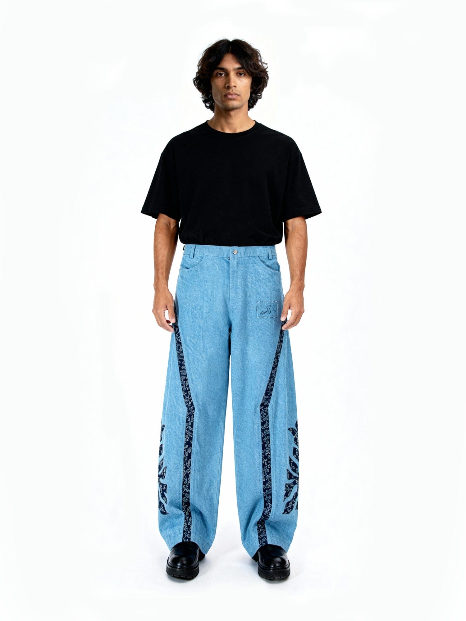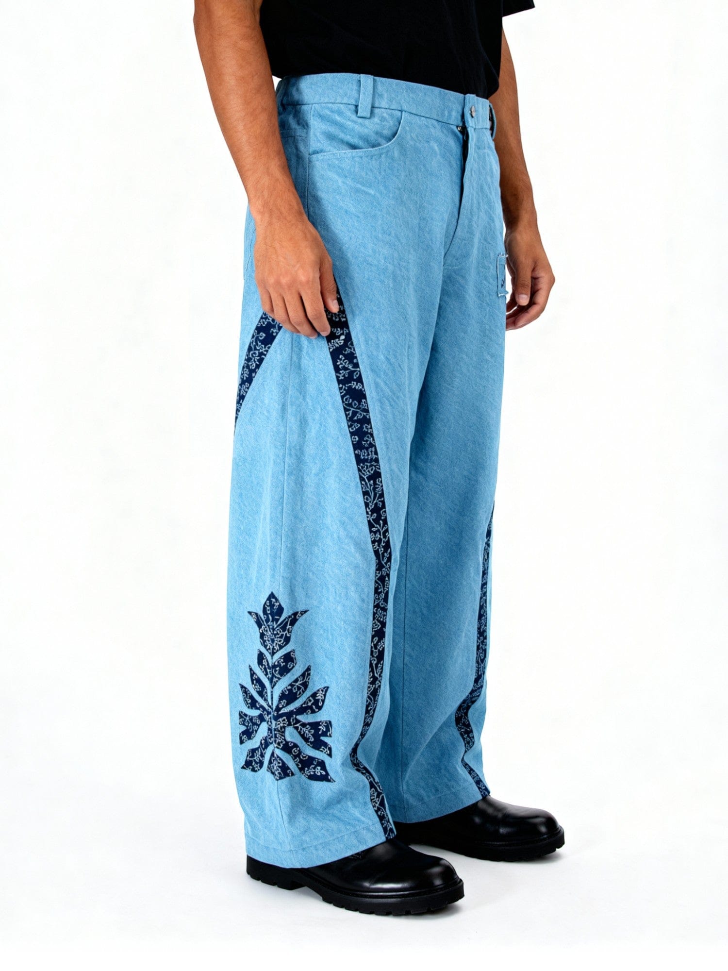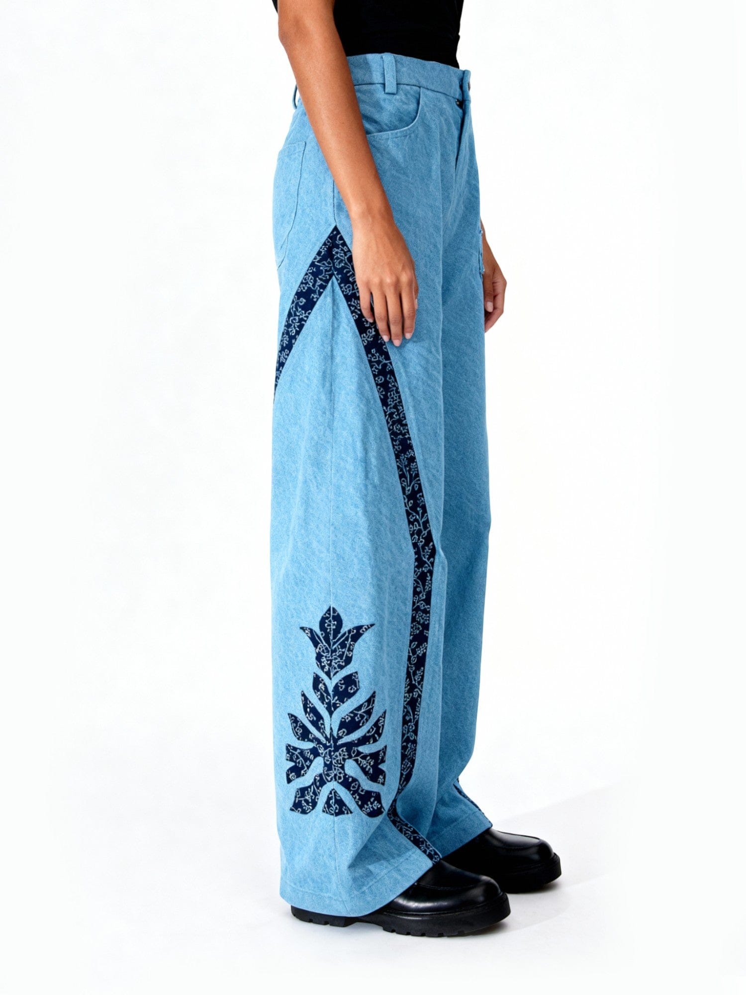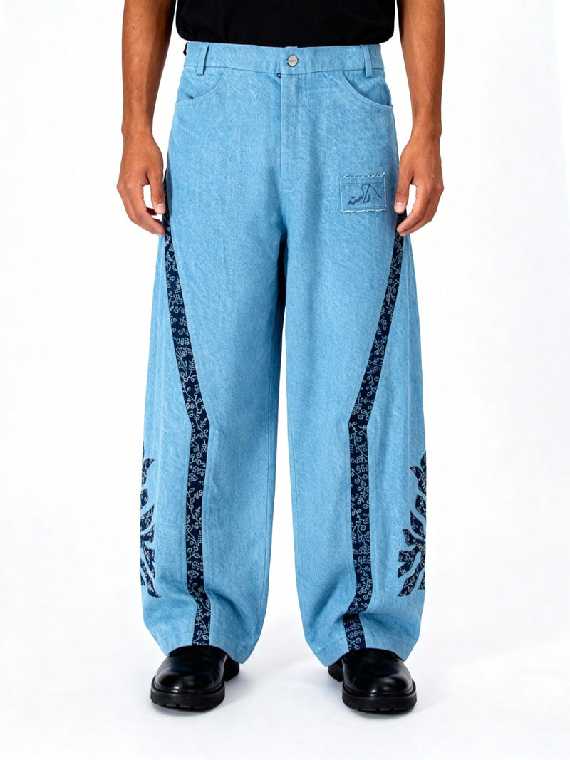 Hand Printed Denim Trousers